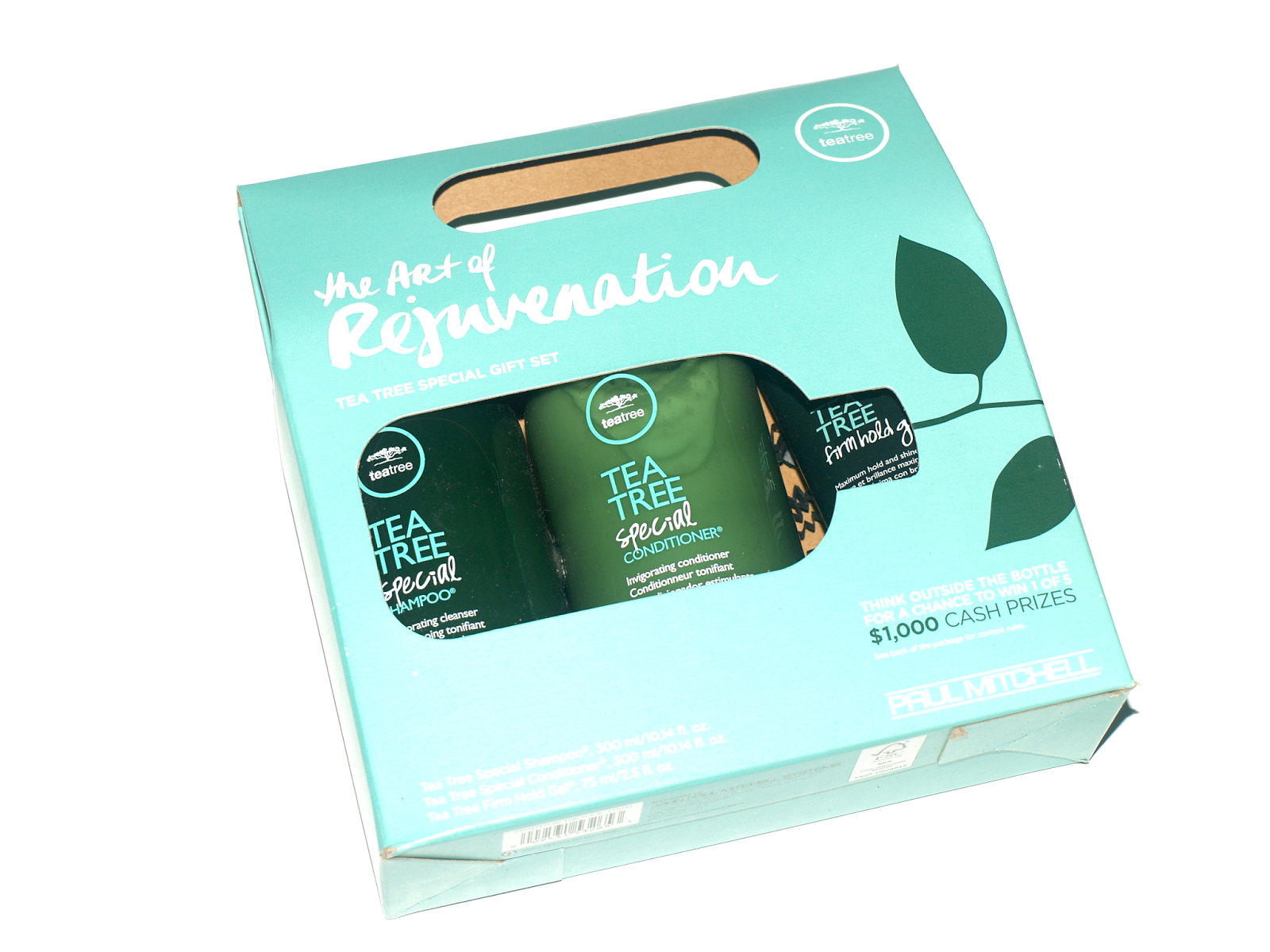 (el arte de rejuvenecer) inclute el Tea Tree Special Shampoo, Conditioner, y el Firm Hold
